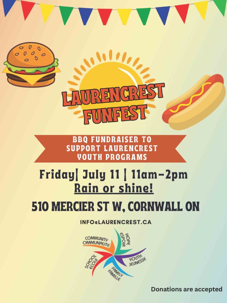 Laurencrest Youth Services Inc. invites you to join us for a BBQ Fundraising Event. All funds collected will go toward youth programming: